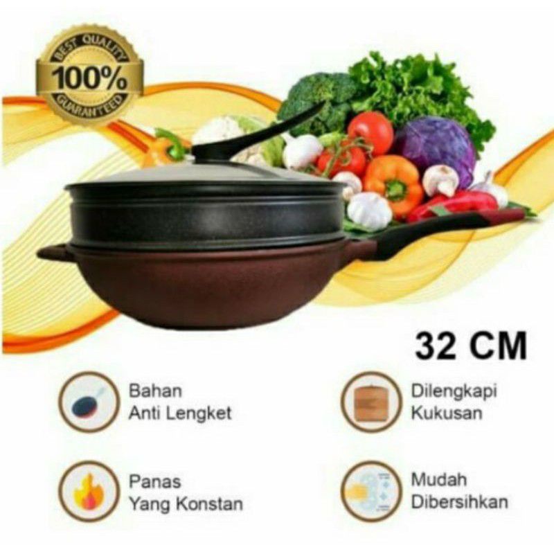 Gratis Buble Dus Tanpa Biaya Tambahan!Kami berusaha Packing Aman produk kami cek Sebelum di kirim, Pecah Rusak Di Expedisi Bukan Tanggung Jawab KamiMohon KOMPLAIN / KLAIM ke EXPEDISIDiskripsi PANCI WOK MuIti Use 32 cm Teflon penggorengan cramic marblePANCI MULTI USE 32CM WOKDeskripsi barang :-Diameter 32cm kedalaman +-8cm + kukusan-ada pegangan, Tutup Kaca-Panas merata.-Diameter 32 cm-Panas cepat merata dan tahan lama-Telfon anti lengket-Mudah Untuk dibersihkan-Memiliki desain yang spesial, dapat mengurangi tekanan secara otomatis untuk menghindari air atau makanan meluap-Tutupnya dapat didirikan di meja untuk mengurangi pemakaian te