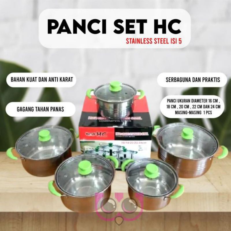 Panci Stainless 10 Pcs Set + Tutup Kaca happy callHarga Untuk Satu Set Panci Dengan Ragam Ukuran (Sesuai Gambar)16cm18cm20cm22cm