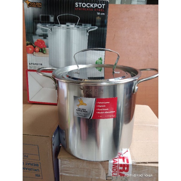 Panci stainless tebal food grade Brand Golden Flying FishSTSP0118BPA free Foodgradeanti karattidak mengubah rasa pada masakancepat matangvolume 4.4liter tinggi ada di foto produksudah termasuk packing