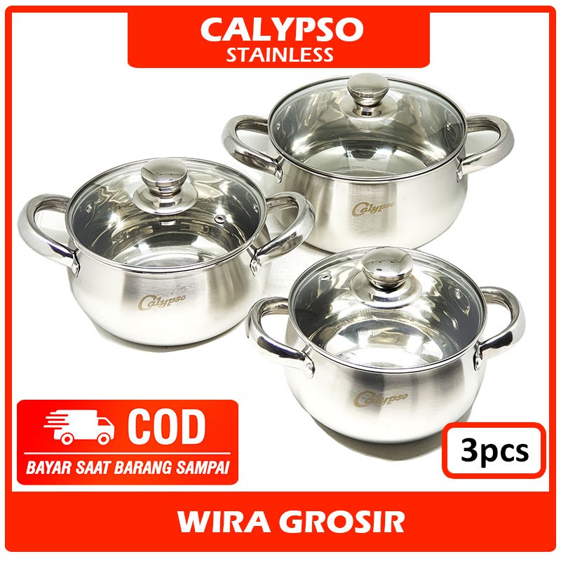 Promo Perlengkapan di Kota Surakarta Calypso Panci Set + Tutup Kaca Stainless 3pcs | Casserole Tahan Panas | Dutch Oven Anti Lengket dari Calypso Kota Medan