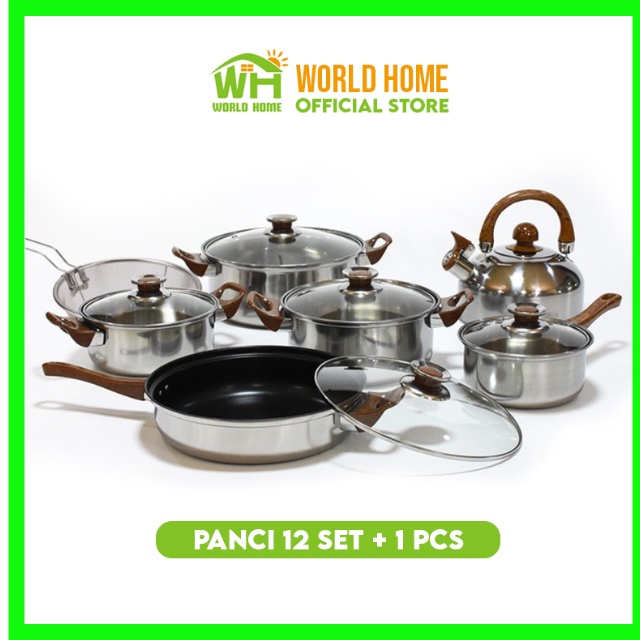 Agen Perlengkapan di Kabupaten Sleman Panci Set 12+1 Pcs Cookware Peralatan Masak Serbaguna Wajan Set Stainless Steel Panci Set Tg-6 Worldhome66 dari Worldhome66 Kota Jakarta Utara