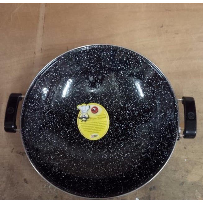 Deskripsi ProdukPenggorengan Enamel Marble Royal Wok Maspion- diameter 40cm- tinggi 9.5cm- Bahan baja di lapisi enamel- awet, dan tidak mudah berkarat- higienis, tidak kontaminasi dengan makanan- cocok untuk goreng, tumis, kukus, dll- tahan asam dan suhu tinggi (250c)- pegangan tidak mudah panas- mudah dibersihkan- tidah mudah lengket- tidak mudah gores- sangat cocok untuk restoran, warung makan, pedagang- makanan tidak bau walaupun sering menggoreng- produk ini tidak ada dus packaging satuan dr pa
