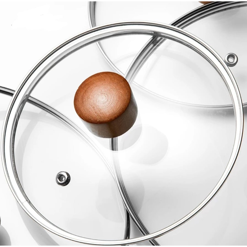 GLASS LID PREMIUM... hanya Tutup Panci nya saja yach....* Jual persatuan / PersizeMaterial: Kaca tebal, Stainless Steel (pinggir tutup), dan dengan pegangan kayuReady 5 size yang bisa dipilih:- 16Cm- 18Cm- 20Cm- 22Cm-