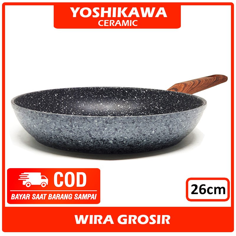 Suplier Perlengkapan di Kabupaten Buleleng Yoshikawa Frying Pan Keramik Tanpa Minyak 26cm | Wajan Marble | Penggorengan Anti Lengket | Teplon dari Yoshikawa Kota Medan