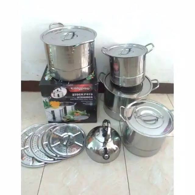 Name: Panci Steamer Stock Pot Calypso Set 4 Pcs + Tutup Stainless Steel + Kukusan Kukus Pengukus Masak