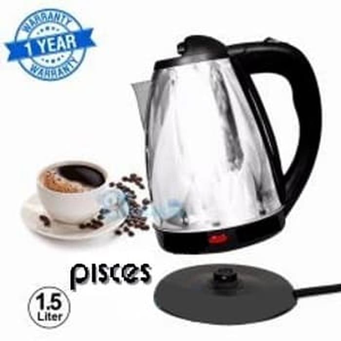 Pisces Kettle 1.5 Liter Double Wall Inner Stainless Teko Elektrik(NB : tambahkan BELI kardus tambahan Packing guna keamanan saat pengiriman,Untuk barang anda sendiri)Pisces Kettle Listrik 400 Watt 1.5 Liter - PK151 Menjaga keamanan dan kualitas air yang dipanaskan tanpa terkontaminasi dengan zat lain. Kettle atau teko listrik dengan lapisan dalam berbahan material stainless steel dan desain luar berwarna putih biru ini semakin modern diletakan pada dapur Anda.Dengan desain exclusive terdapat indikator led proses memasak air dilengkapi elemen pemanas terpisah dengan kettle/teko sehingga mudah digunakan mudah dicuci Cara penggunaan : Angkat kettle/teko tancapkan pada dudukan elemen pemanas tanjapkan kabel power ke listrikSpesifikasi:* merk : Pisces* type : PK151* Kapasitas 1.5 Liter* Terdiri dari dua layer (lapisan)* Body tidak panas saat air telah matang* Daya : 400 Watt* Food Grade* Auto turn off* Dimensi Kemasan : 18 cm x 17.5 cm x 22.5 cm* Garansi : 1 Tahun* Elemen pemanas terpisah (sebagai alat kettle)#murah #freeongkir #murahmeriah #murahbanget #grosirmurah #murahbanget #welcome #seller #reseller #dropship #kettlepemanas #tekoelektrik #tekomurah#BelanjaDIrumah#DirumahAja#shopeebelanjadirumah #ShopeeDari