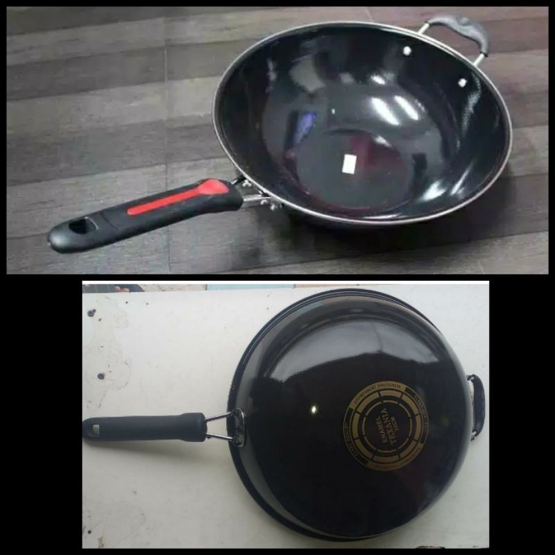 Terlaris Perlengkapan di Kabupaten Banjarnegara Wajan Enamel Gagang & Kuping Hitam Kwalii Penggorengan Texania 34 Cm Anti Lecet dari Mita_olshop11 Kota Jakarta Barat