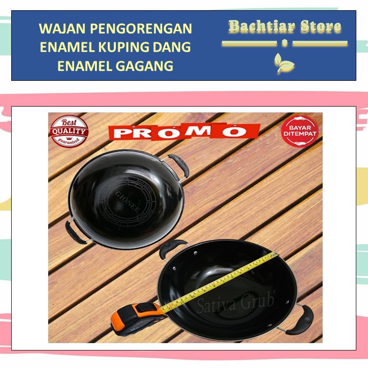 SELAMAT BELANJA DI BACHTIAR_STORE==================================Wajan ENAMEL merupakan wajan yang terbuat dari bahan enamel berkualitas, kuat, dan tahan lama. Didesain ekonomis dan mudah dibersihkan. Memiliki handle tahan panas, sehingga memudahkan Anda saat mengangkat wajan untuk penyajian masakan. Wajan ini cocok digunakan untuk berbagai masakan seperti oseng, tumis,menggoreng dan sebagainya.Fungsi :serbaguna alat penggorengan masakanMenggoreng, tumis, dan oseng, dllWajan Cooking Wajan enamel food grade, aman untuk mengolah masakan Anda untuk keluarga tercinta Bisa digunakan di kompor induksi maupun kompor listrikCara menggunakan :Pastikan wajan dan minyak benar-benar panas, baru masukkan bahan yang akan digoreng. Sesudah itu sesuaikan suhu/besarnya api agar masakan/gorengan anda tidak gosong...Spesifikasi Produk :* Material : enamel* Model/Desain : wajan cekung* Diameter Riel Frypan : 36 cm* Kedalaman Frypan : 10 cm* Dimensi : 36 x 36 x 10 cm* Handle Wajan Anti Panas kedua sisi* Kuat dan Tahan Lama anti Karat tidak lengket* Desaign Ekonomis cepat panas cepat dingin sehabis digunakan* enamel mudah dibersihkan* Dapat Digunakan Pada Kompor Listrik. Gas , kompor listrik, kompor Keramik maupun InduksiMiliki Cooking wajan enamell sebagai peralatan masak anda dengan desain model ekonomis dapat dipergunakan masak/menggoreng dengan baik dan mudah di bersihkan serta anti karatNOTE!!!!!!!!MOHON DIBACA PENTINGCatatan pengiriman dan resiko packing :1. untuk produk yang resiko mudah pecah/rusak, kami sangat sarankan untuk menambahkan produk bubble wrap pada setiap cekout.2. jika terjadi kerusakan pada pengiriman karena tidak menggunakan bublewrap/handling kurir, toko kami tidak menanggung/mengganti kerusakan tersebut.3. setiap pengiriman produk sudah dilakukan pengecekan dan dipastikan berfungsi oleh tim packing kami.4. kami packing motif/variasi berdasarkan pilihan pada setiap checkout bukan berdasarkan chat.5. mohon masukan cadangan warna/variasi pada catatan agar mudah menggantikan saat warna yang diminta habis (agar bisa cepat dikirim)6. konfirmasi barang kosong kami berikan 1hari, tanpa jawaban kami anggap random/bebasx.7. jika ingin komplain wajib memberikan video saat pertama kali buka paket untuk bukti kesalahan tim paking (mohon maaf bukti foto tidak kami terima)TERSEDIA DALAM BERBAGAI MERK DGN KUALITAS, JENIS DAN HARGA WAJAN ENAMEL YANG SAMAJIKA STOK GIONEE KOSONG, MAKA DIKIRIM DGN MERK YG TERSEDIA DI TOKONO KOMPLAINNO RETURNNO CANCELHappy shopping #murah #freeongkir #murahmeriah #gratisongkir #murahbanget #grosirmurah #alatdapurmurah #welcome #seller #reseller #dropship #wajanmurah #wajanmasak #wajane