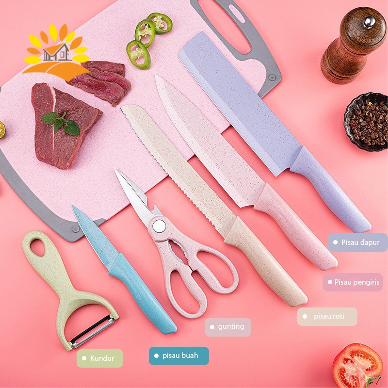 Set pisau serbaguna yang terbuat dari bahan stainless steel non stick coating Cocok untuk di gunakan di rumah tangga ataupun dijadikan hadiah untuk keluarga terdekat atau orang kesayangan anda. 1 set terdiri dari 6 pisau dengan warna kombinasi (tidak bisa pilih 1 warna karena sudah 1 set) dan 1 Serutan.Merk : VISHALKualitasnya sangat bagus, harus dimiliki untuk hadiah~Spesifikasi :- 6 Pcs Pisau Set- Pisau di lapisi anti lengket- Sangat tajam- Dilengkapi peller - Kualitas Stainless anti karat- Desain EleganIsi Produk :1pc pisau besar/ panjang= 31cm1pc pisau kecil/ panjang= 18cm1pc pisau daging/panjang= 31cm1pc pisau roti /panjang=31 cm1pc gunting/ panjang= 20cm1pc serutan/panjang= 14cmDimensi: 37 x 24 x 4 cmNote : Untuk hari Senin-Sabtu proses pesanan dilakukan sampai jam 15.00WIB , Hari minggu jam 14.00WIB . Orderan yang melebihi jam yang telah dintetukan akan dikirim ke-esokan hariny