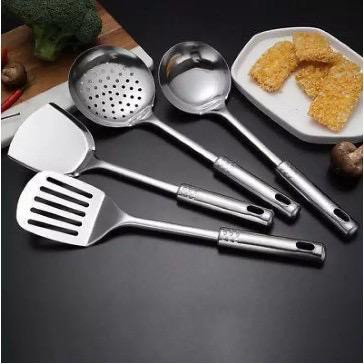 Spatula set stainless 4pcsTerbuat dari bahan stainless stell anti karat dan yang bergun utk membantu proses memasak andaSpatulaS