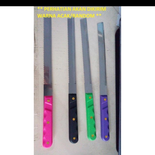 2 Side Knife Bread - Pisau Roti 2 SisiFungsi : Pisau Pemotong Roti dengan 2 sisi mata pisau (bergelombang dan rata)Panjang Pisau : 32cmPanjang panjang mata pisau : 20cmPanjang gagang pisau : 12cmDiameter mata pisau : 2cmBahan : Stainless
