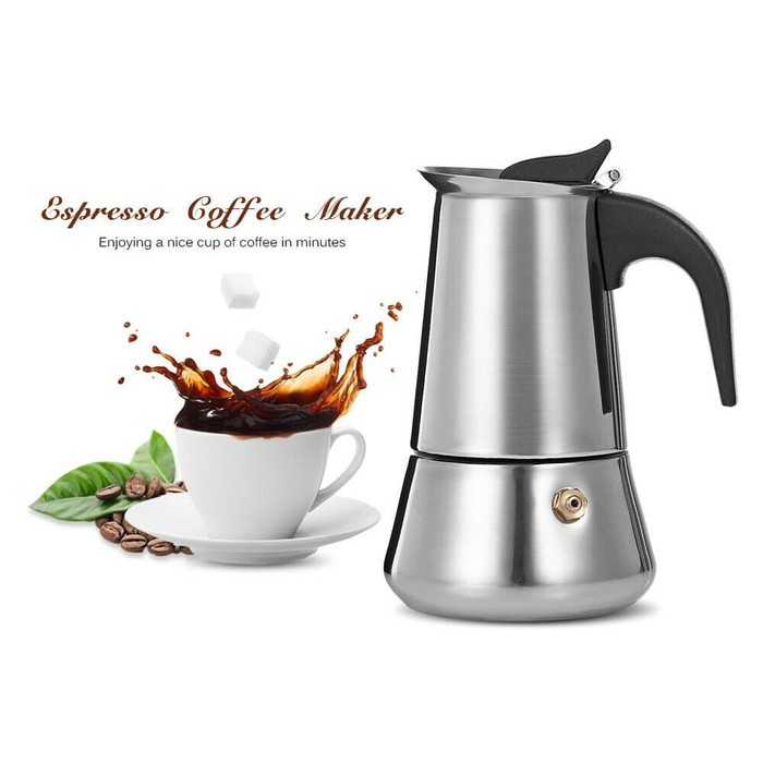 HARAP MEMBACA DESKRIPSI TERLEBIH DAHULU SEBELUM SALAH PAHAM MENGENAI KAPASITAS AIR KOPINYA!!Ini adalah etalase ukuran 100ml dan 200ml, mengingat ukuran keduanya hampir samaTersedia 4 ukuran :100ml200ml300ml450mlBahan : stainless steelMoka Pot Coffee Maker Banyak cara yang dapat dilakukan untuk mendapatkan espresso nikmat. Daripada anda mengeluarkan uang hanya untuk berkunjung ke kedai kopi, lebih baik membeli Moka Pot Coffee Maker. Harganya yang terjangkau dan proses pembuatan yang simpel, membuatnya banyak diminati. Produk ini berasal dari Italia. Hampir semua keluarga disana memilikinya, karena rutinitas mengkonsumsi kopi seperti telah menjadi tradisi yang dilakukan setiap harinya. Kerja dari alat ini adalah menggunakan teknik vakum, air yang ada dibagian bawah akan segera menguap ke sisi atasnya ketika mendidih. Hal itu tentu saja untuk bisa mengeluarkan sari pati dari kopi. Moka Pot Coffee Maker – Mudah Buat EspressoJika anda berminat untuk membeli Moka Pot Coffee Maker, anda harus mengetahui beberapa hal mengenainya. Untuk tipe manual terdapat tiga sisi, yakni bawah (untuk meletakkan air sebelum dipanaskan), tengah (menyimpan bubuk kopi dan terdapat filter) serta atas/ ketel (menampung hasil dari proses brewing). Cara menggunakannya yaitu memasukkan bahan ke masing-masing bagian tersebut, lalu tutup sampai rapat atasnya. Kemudian dipanaskan diatas kompor, selanjutnya hanya perlu menunggu sampai mendidih. #mokapot #coffeemaker #coffeeteamaker #coffegrinder #ottencoffee #coffeelover #espresso #espressomaker #pembuatkopi
