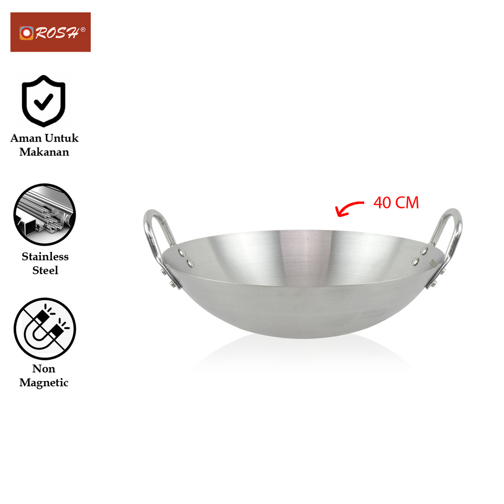 Banting Harga Perlengkapan di Jakarta Pusat Rosh Wajan Anti Karat 40 Cm Stainless Steel Super Wok Twin Handle Ros-pr-sw40 Chrome dari Rosh Kota Jakarta Barat