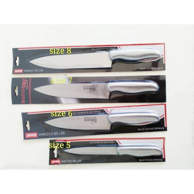 Pisau SolingenUntuk ukuran 5 dan 8 tanpa tulisan solingen di pisau.Silakan tambahkan bubble wrap pada produk belanjaan AndaNOTE :Sebelum kirim barang sudah di cek OKKerusakan penyok/pecah saat pengiriman ditanggung pembeliNO RETUR / NO KOMPLAINOrder = SetujuHappy shopp