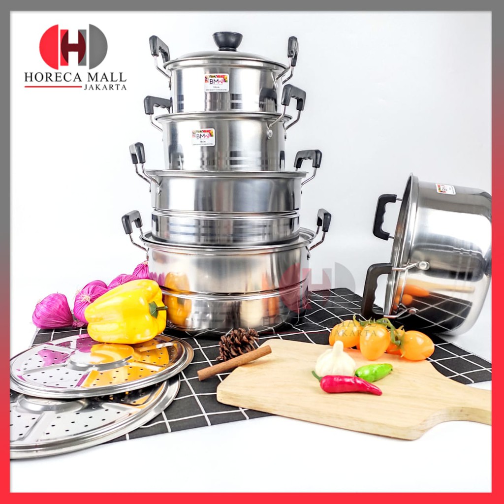 Pusat Grosir Perlengkapan di Kabupaten Pati [1 Set Isi 5pcs] Panci Bmw Steamer Kukus Dandang Soup Pot Tinggi Termurah dari Tidak Ada Merek Kota Jakarta Barat