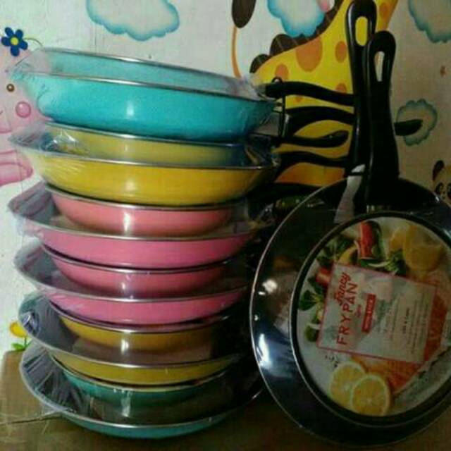 frypan bahan enamel yang dilapisi dengan teflon anti lengket, terdiri dari frypan 18 dan 23 cm. harga murah m